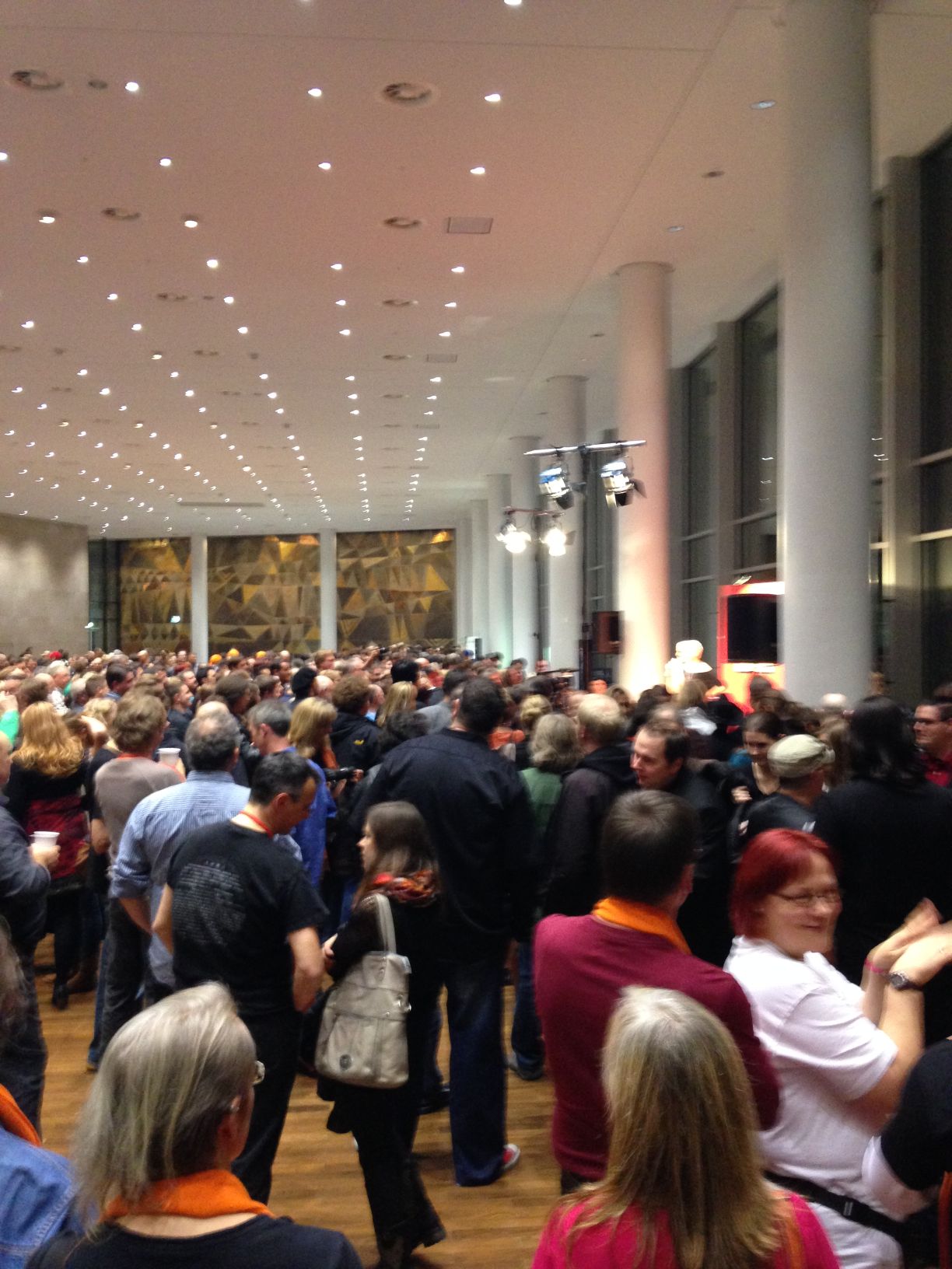 Für das Publikum (Ticket kostete regulär stattliche 20 Euro) bedeutete das: Band – Moderation – Band – Moderation – Band – Moderation... u.s.w.. Spannend war allemal der Feuer-Alarm kurz nach Beginn: Evakuierung, Feuerwehreinsatz, eine Stunde ohne Informationen in der Kälte auf dem Vorplatz warten. Bei aller kalkulierter Massenabfertigung hatten die Veranstalter offenbar vergessen, im Vorfeld über den Einsatz von Nebelmaschinen und Brandmelder zu sprechen.
