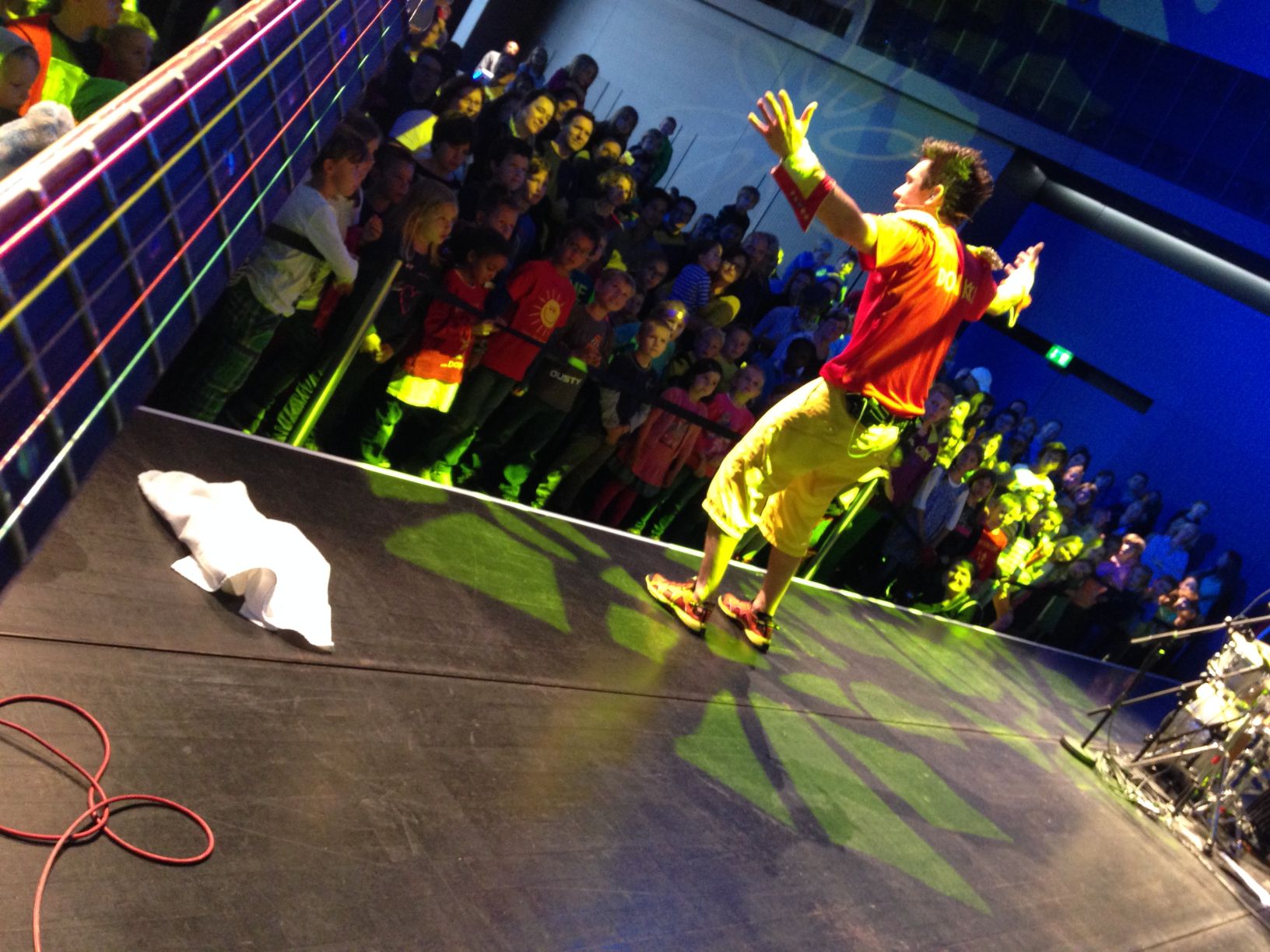… und dazu noch pädagogische Inhalte wie z.B. Verkehrserziehung oder Übungen mit einem Sportpädagogen. Zudem gab's noch ein Quiz auf großer Videoleinwand. „Wenn die Ampel „rot“ zeigt, was darf man dann tun?“, war z.B. eine der Fragen: Antwort a, b oder c?