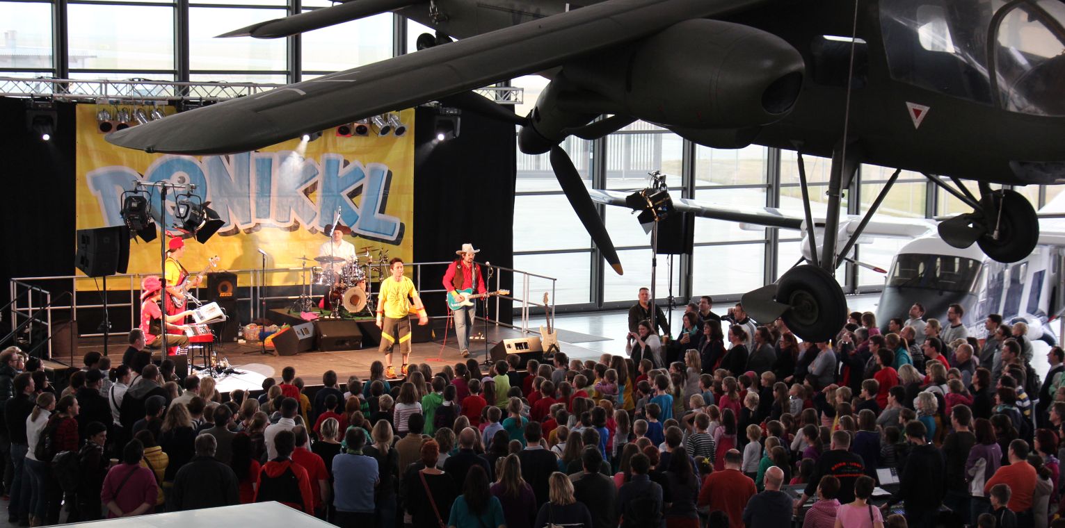 Warum? Weil wir im Dornier-Museum in Friedrichshafen gastierten. Dornier war Flugzeugbau-Pionier und in diesem Museum stehen eine Menge Flugzeuge, Helikopter. Raketen und andere (Flug-)Maschinen. Den Traum vom Fliegen hatten schon viele Menschen – deshalb gibt es, streng genommen, auch eine Menge Fliegerlieder.