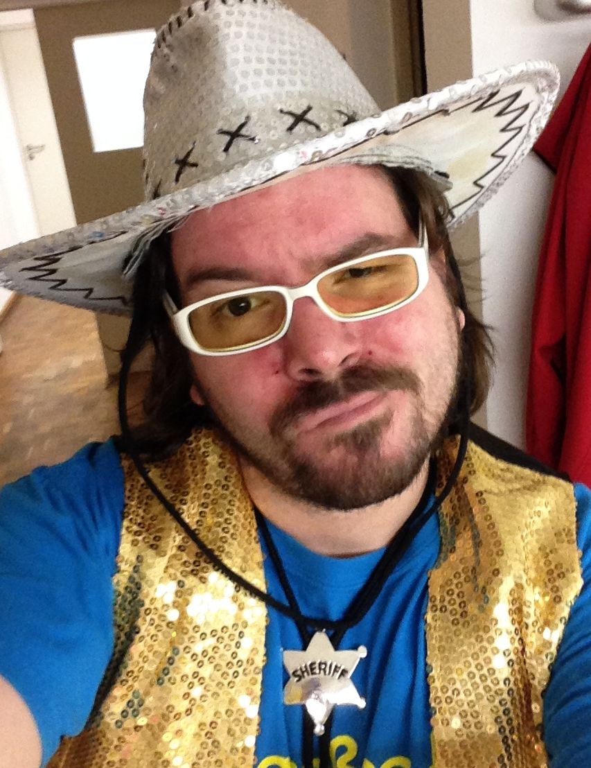 Hut, Brille, Cowboy-Stern u.s.w. hatte ich jedoch zur Hand – immerhin etwas! Und Keyboarder Stephan Barents alias "Körby" bot mir dann noch an, seine "Funk im Tank"-Weste zu tragen. Bei diesem Song schlüpfen wir normalerweise in ein extra Disco-Glitzer-Outfit. Doch an diesem Samstag glitzerte Cowboy Kört eben von Beginn an. Konzerterlebnis gerettet!