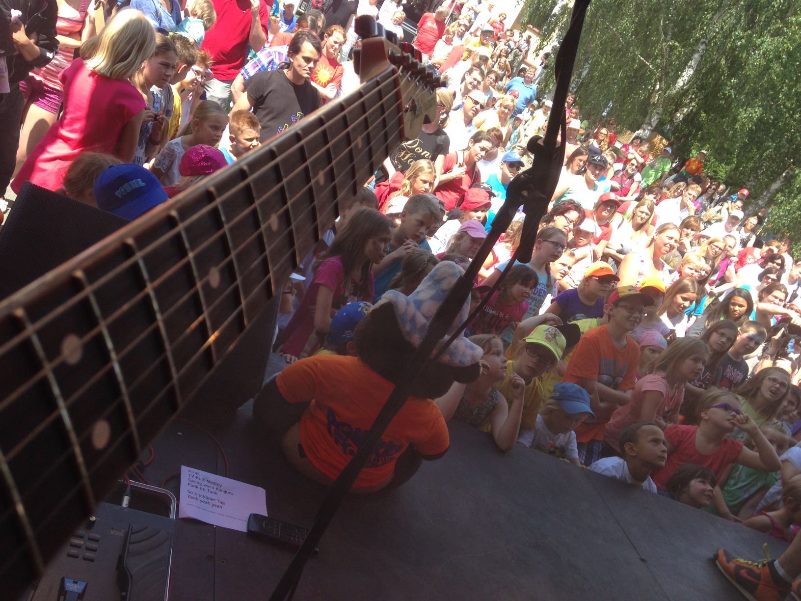 Tatsächlich lagen noch ein paar rosa Ballon-Fetzen am Boden herum, als wir kurz nach Tobis Auftritt mit der Donikkl-Tigerbande die Bühne betraten.