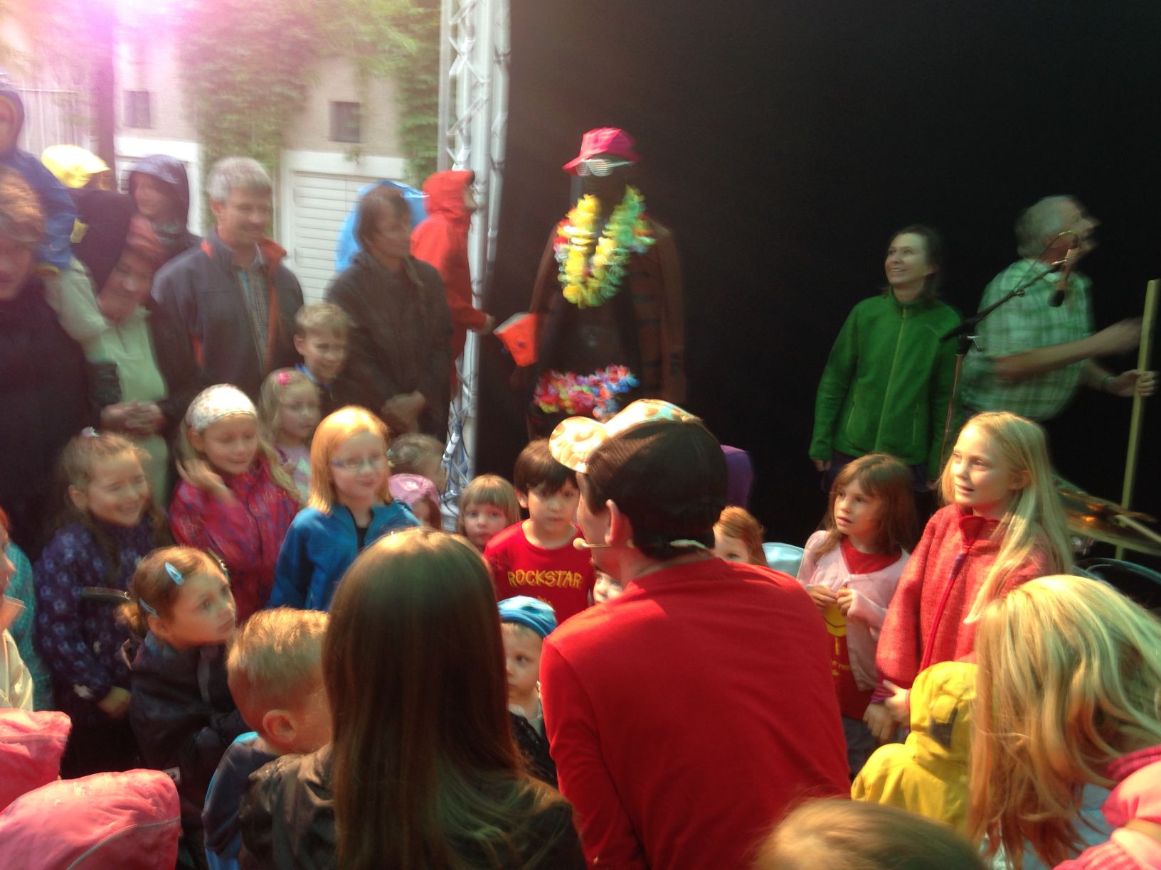 Denn wenn Platzregen auf einfache „Sonnenschutz“-Bühnenkonstruktion trifft, bedeutet das in den meisten Fällen „Konzertabbruch“. Bei Mitmach-Konzerten ist das allerdings anders.