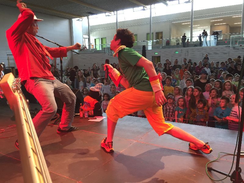Donikkl-Konzerte sind nicht umsonst eine Mitmach-Show: Die Kinder (und Eltern) werden auf die Bühne eingeladen, gemeinsame Tänze einstudiert. Und natürlich darf gesungen werden.