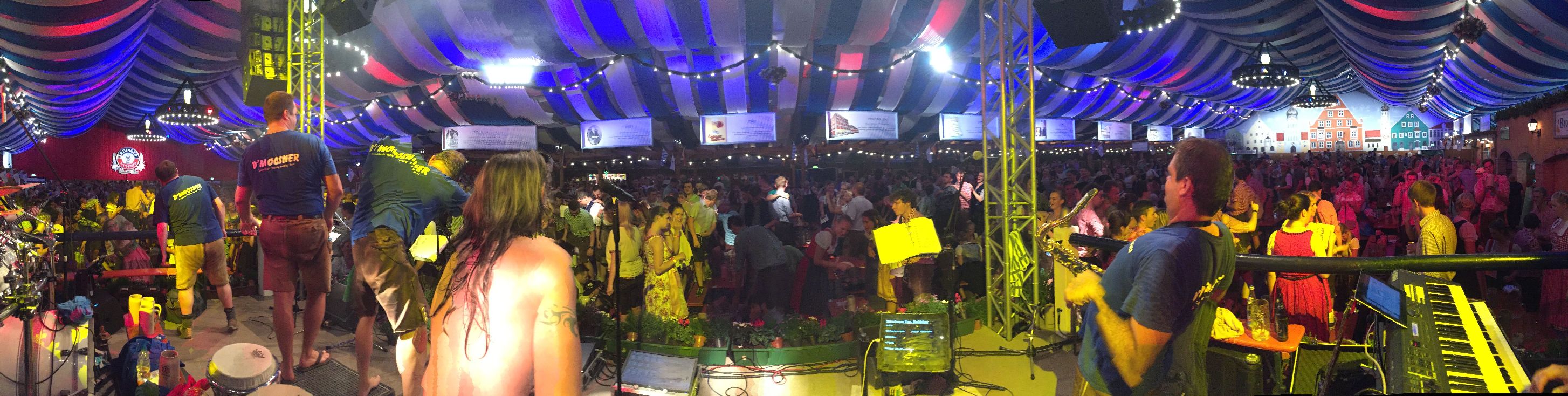 „d'Moosner“ sind in der Bierzelt-Szene im Großraum München eine bekannte Größe. Der Lead-Gitarrist konnte ein paar Termine nicht mitspielen – also sprang ich für einige Konzerte recht kurzfristig ein. Das erinnerte mich sehr an die Zeit mit der Party-Band „Münchner Geschichten“; deren Frontmann "Tom" ist offensichtlich ein großer Fan der „Moosner“. Er schaute auch mal beim Konzert am Erdinger Herbstfest vorbei und genoss dort sicherlich ein wenig „Altes Fieber“.